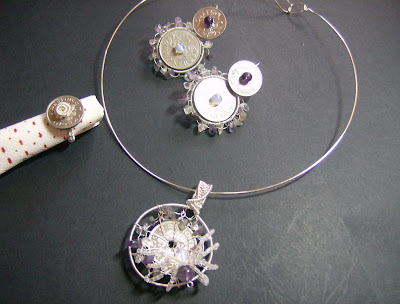 Acest set a fost o adevarata provocare.De ce? Pentru faptul ca la aceasta comanda am primit cateva monede , din care trebuia sa realizez cercei , pandant si inel.Asa incat dupa ceva timp de gandire , am abordat stilul ,,spider "-ulterior am aflat ca persoana de la care primisem banutii este mare fana spiderman-pentru ca d-ra imi paruse usor excentrica , dar moderna in acelasi timp si cu multa imaginatie.Et voila....