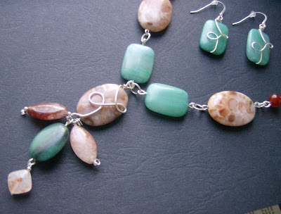 Set ,, Ocean" din semipretioase agat si fir argintat