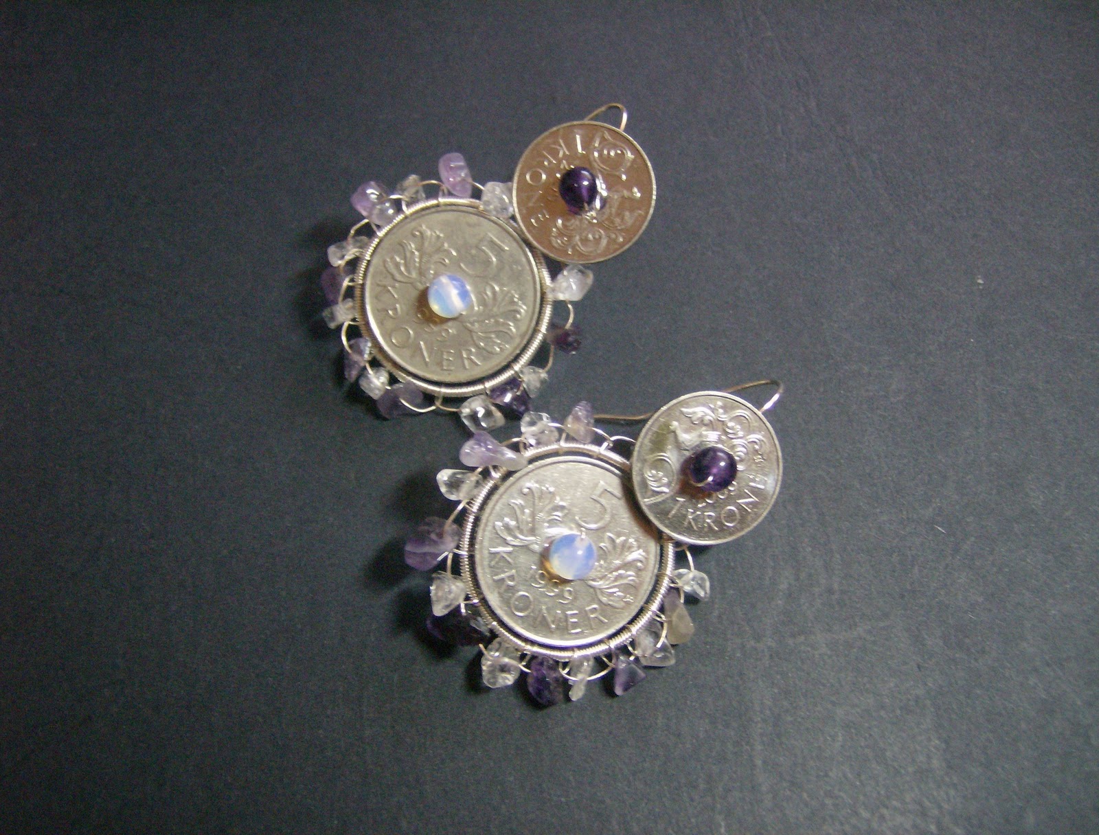 Set ,, Pretziosa" din monede daneze si norvegiene , semipretioase cristal de stanca si ametist.