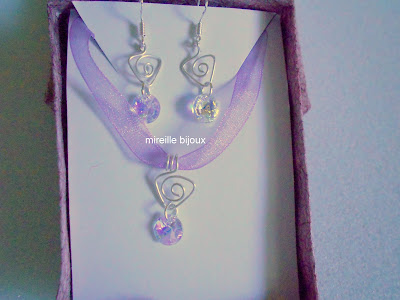 Set ,Triangles spiral" din swarowski ametist , cristal aurora boreala si argint 925